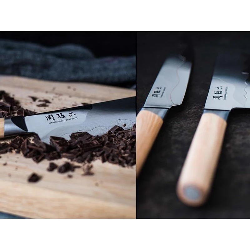 Conçu et fabriqué par Kai, célèbre marque Japonaise, ce couteau à trancher Seki Magoroku Composite va vous permettre de trancher facilement tous les aliments, et cela sans effort. Et pour cela, vous pourrez compter sur une grande lame de longueur 18cm, qui est réalisée à partir de deux types d’acier. Cela permet de créer un joli contraste avec un dos de lame satiné en VG-10 ainsi qu’un tranchant poli miroir en acier SUS42012. Il n’est pas difficile d’observer sur la lame une ligne sur toute la longueur, qui vient témoigner de la technique de brasage visant à unir les deux aciers. Cela crée en plus un effet esthétique/design très apprécié, de quoi joindre l’utile à l’agréable. À noter que le couteau à trancher Japonais Seki Magoroku Composite, signé Kai, existe aussi en version lame de 225mm. En plus, les cuisiniers ne pourront qu’apprécier le manche en bois pacca clair avec jolie veinure pour une apparence des plus élégantes. Une belle poignée, très résistante, et très ergonomique pour des utilisations du couteau toujours très confortables. Avec lui, vous pourrez trancher les aliments avec la plus haute précision, digne d’un grand chef de cuisine. La série Seki Magoroku Composite par Kai allie performances, élégance et ergonomie, et ça se ressent dans l’assiette !