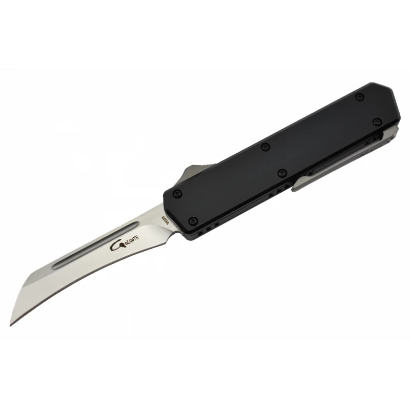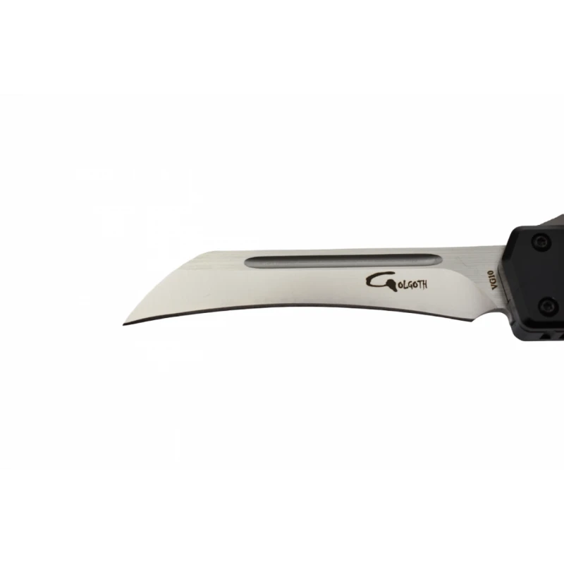Le couteau automatique OTF double action Golgoth G13HB offre une combinaison puissante de fonctionnalité et de design remarquable. Avec une lame Hawkbill en acier VG10, il garantit une performance de coupe exceptionnelle et une durabilité accrue. La longueur de la lame, qui mesure 80 mm, offre une polyvalence pour diverses tâches.