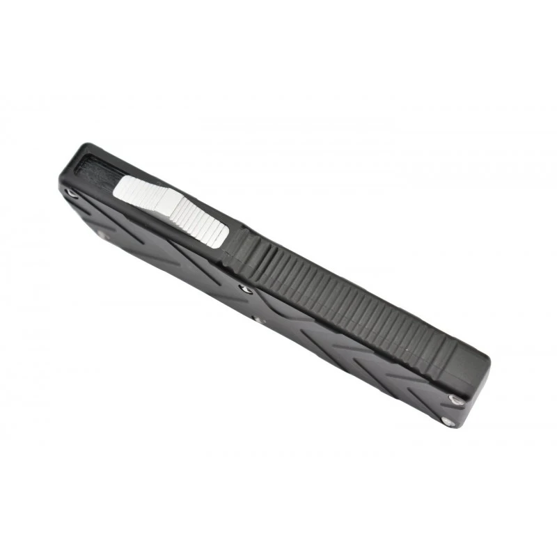 Le MKO6, par Max Knives, est un couteau automatique OTF simple d’utilisation et tellement efficace. Il est doté d’une lame de 84mm de long, en acier D2 résistant à la corrosion et à l’usure, et d’épaisseur 3mm. Marquée par le logo Max Knives, elle peut être gravée par une inscription au choix, pratique pour une identification simple et rapide ou tout simplement dans l’optique d’offrir. L’ouverture/fermeture de la lame est assurée grâce au bouton latéral qui vous l’aurez compris, est situé sur le côté, la tranche du manche de couleur noire en aluminium anodisé. À noter que ce dernier est texturé pour un design beaucoup plus sympathique, attrayant. La poignée noire ne possède pas de clip de poche, mais elle ne mesure que 118mm de long, ce qui permettra un transport simple et sans encombre quotidiennement. D’ailleurs, il faut savoir que ce couteau automatique OTF Max Knives MKO6 est vendu avec son étui ceinture en nylon. Idéal pour toujours le garder près de soi !