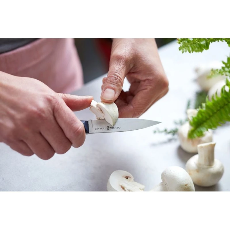 Le couteau d’office Opinel Intempora n°225 est très polyvalent, il dispose également d’un manche noir, surmoulé en POM chargé en fibre de verre. Cela lui permet d’atteindre un niveau de résistance difficile à égaler, notamment aux chocs, à l’eau ainsi qu’à l’usure. La forme galbée de la poignée permet à l’utilisateur une utilisation plus confortable et beaucoup moins fatigante. Le coloris noir assure au couteau d’office Opinel n°225, gamme Intempora, de parfaitement s’intégrer dans une cuisine de style moderne, contemporaine.