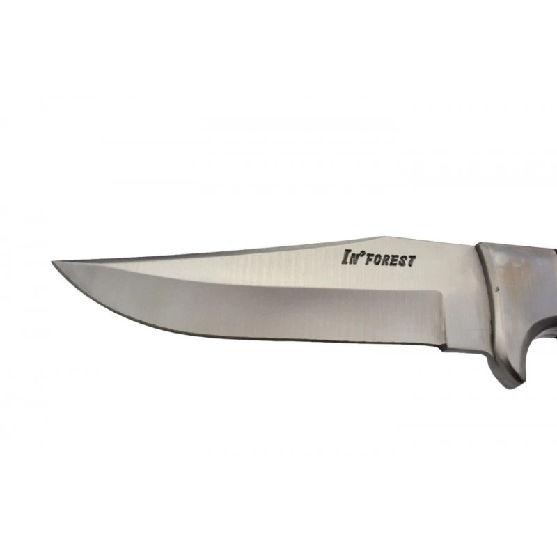 Le modèle IF2 possède une lame fixe de 115mm de longueur, faite d’acier inoxydable 440 résistant à la corrosion. De forme drop point, son utilisation est sécurisée par une garde simple, évitant que la main ne glisse en sa direction. Il est possible de la personnaliser par gravure en option. Épaisseur de lame : 3,5mm.