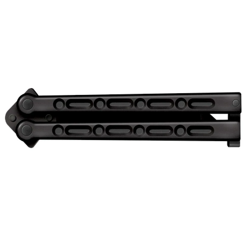 Conçu par la marque Américaine Cold Steel, ce couteau papillon CS92EAB, FGX Balisong, est entièrement fait de Griv-Ex noir. Un moulage par injection qui permet de tirer les prix vers le bas, tout en assurant résistance et légèreté (mélange de fibre de verre et polymère). De forme tanto, la lame de 127mm de longueur présente une pointe renforcée ultra-performante, capable de perforer avec puissance ! Le manche noir de 153mm de long vous apportera du confort lors de chaque utilisation, il faut dire qu’il est agréable de le tenir en main. Le poids du couteau papillon FGX Balisong Cold Steel CS92EAB ainsi que le loquet de retenue vous permettront de le faire basculer pendant des heures avec plaisir ! À ce prix là, il sera très difficile de trouver mieux ailleurs, d’autant plus que Cold Steel est une marque fiable, qui a fait ses preuves. Ce modèle CS92EAB est muni d’une lame lisse, mais vous trouverez sur le site, dans le même style, un balisong Cold Steel avec une lame noire lisse/dentée (voir accessoires en bas de page).