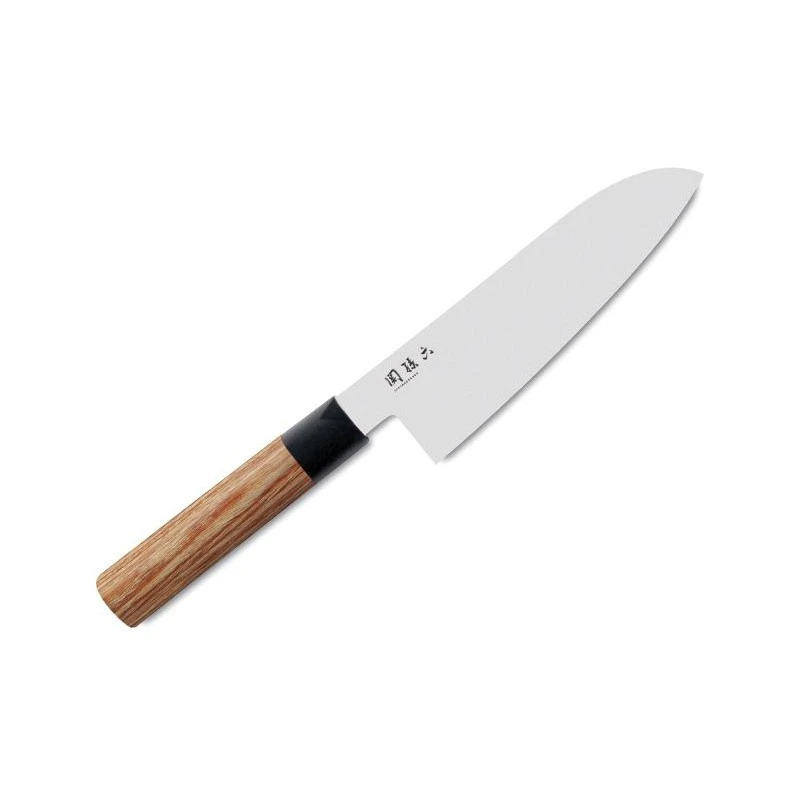 Le couteau Santoku Kai Seki Magoroku Redwood MGR.170.S est très polyvalent, et pourra servir pour couper les légumes, les viandes ou encore le poisson. Pour cela, il se dote d’une lame mesurant 17cm de longueur, elle est fabriquée en acier inoxydable poli et bénéficie d’une très bonne dureté (58 +/- 1 selon l’échelle Rockwell). Elle garantit des découpes toujours très précises de vos aliments, elle est aussi discrètement décorée par des symboles Japonais, ce qui rajoute du charme ainsi que de l’authenticité. Couteau Santoku Kai fabriqué au Japon.