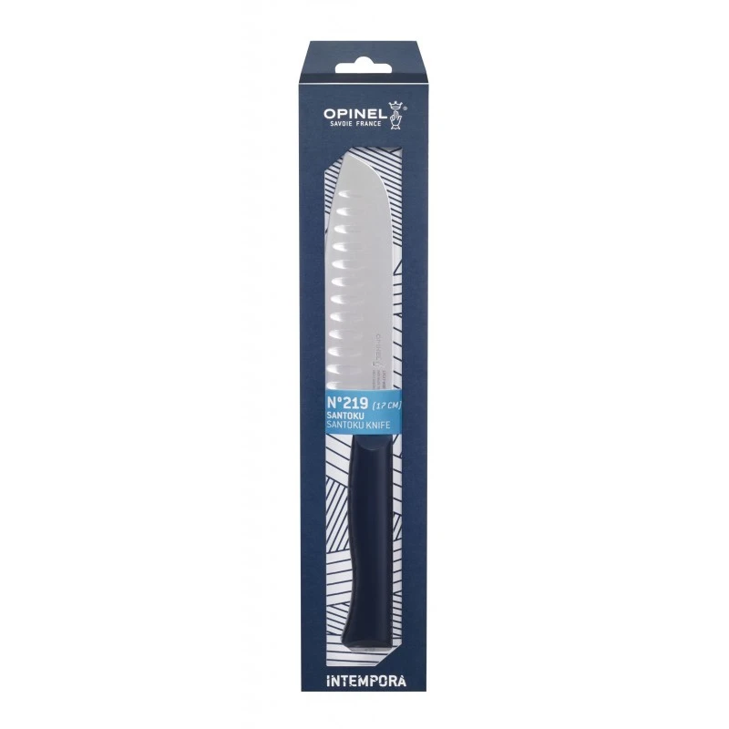 À la fois polyvalent et robuste, l’Opinel Intempora n°219 est un couteau Santoku qui sera votre plus fidèle compagnon de cuisine. Que ce soit pour hacher, émincer ou pour la préparation des poissons et crustacés, rien ne lui fait peur ! Il possède une lame de 17cm de longueur, en acier inoxydable 12C27 modifié de Sandvik, comportant de nombreuses alvéoles afin que les aliments découpés ne restent pas accrochés sur la lame. Relativement large, la lame permet de facilement porter les aliments jusqu’au récipient : très pratique ! Épaisseur de la lame : 3mm.
