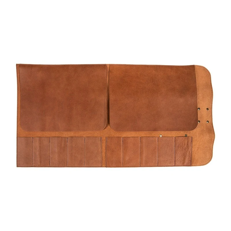 Nous vous proposons une trousse d’exception pour ranger avec soin vos couteaux de cuisine. Entièrement réalisée en cuir animal, cette serviette fait main vous offre 10 emplacements pour accueillir vos plus belles lames.